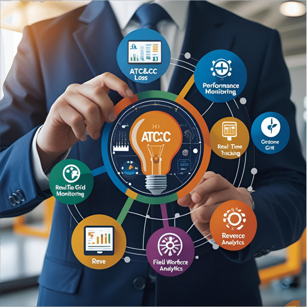 A comprehensive utility performance management suite that includes modules for ATC&C loss tracking, real-time grid monitoring, field workforce analytics, and revenue protection, integrating seamlessly with smart meters, IoT sensors, and blockchain for tamper-proof audits