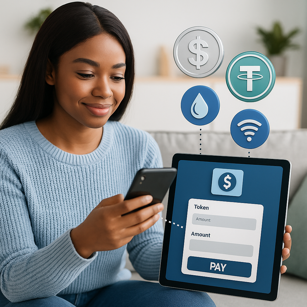 Unified prepaid/postpaid billing system with USSD, mobile wallet, token vending, and blockchain-enabled settlement automation, integrating tokenised payments and fintech API for digital utility commerce.